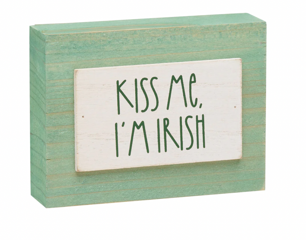 Green Washed Wood Block Sign with 3D White Washed Wood Layer and Green Text.