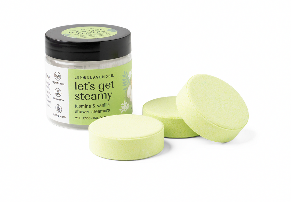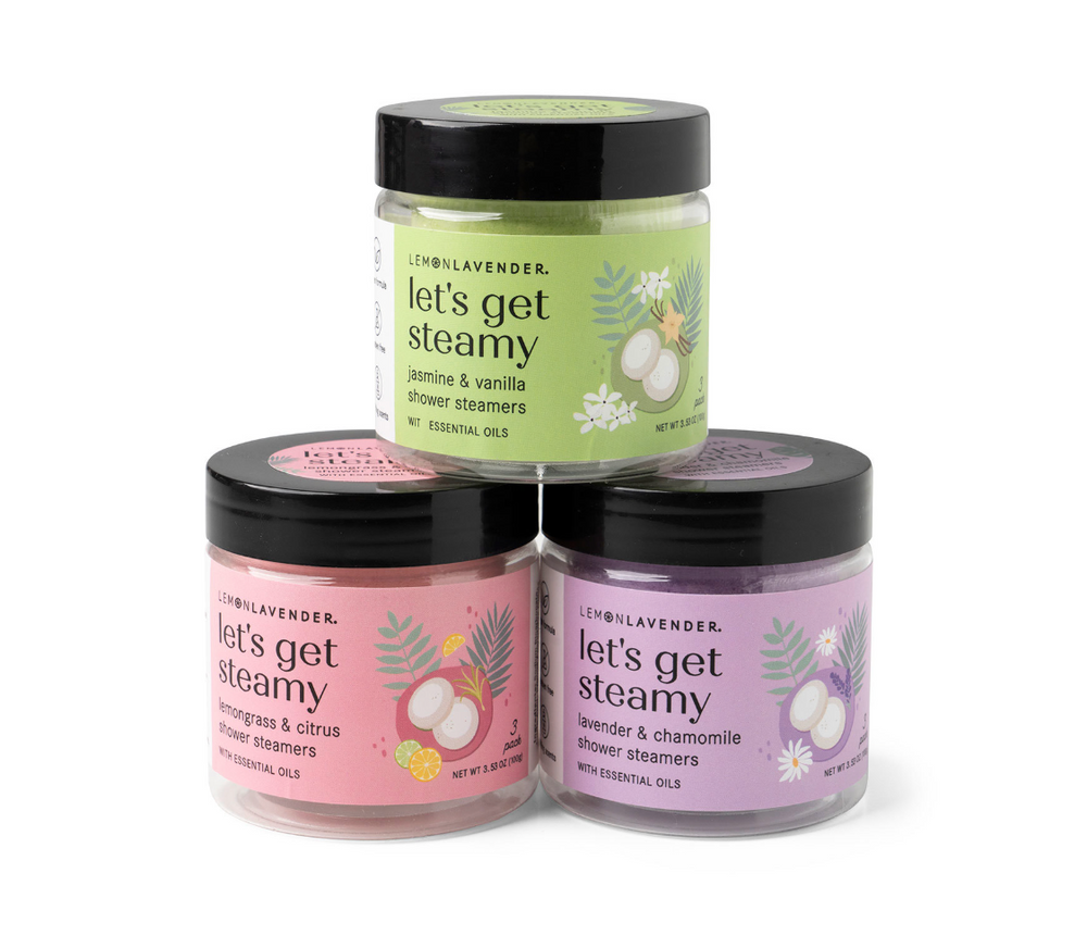 Need to relax and short on time? Packed with two kinds of essential oils, these in-shower steamers let you reset and unwind without sacrificing time for snoozing or scrolling. Set on a ledge where it’s sure to get splashed and breathe deep while you wash up. Each jar is packed with three individually wrapped steamers, in three scent duos: jasmine & vanilla, lavender & chamomile and lemongrass & citrus.