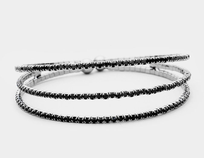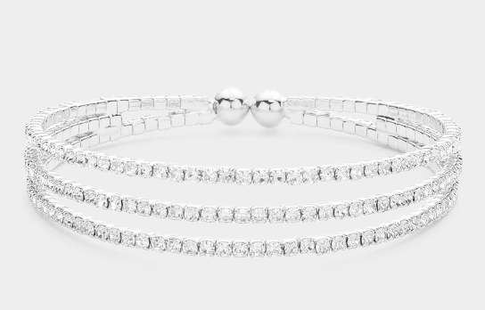 3 Rows Split Layered Rhinestone Cuff Bracelet