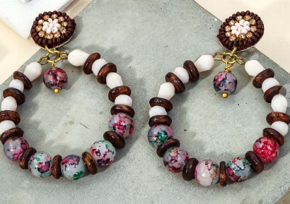 A new soon to be trending must have pair of earrings that features a unique boho circle beaded statement earrings design. A perfect gift for the upcoming season.