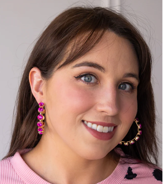 Fucshia Gemstone Embrace Crystal Hoop Earrings