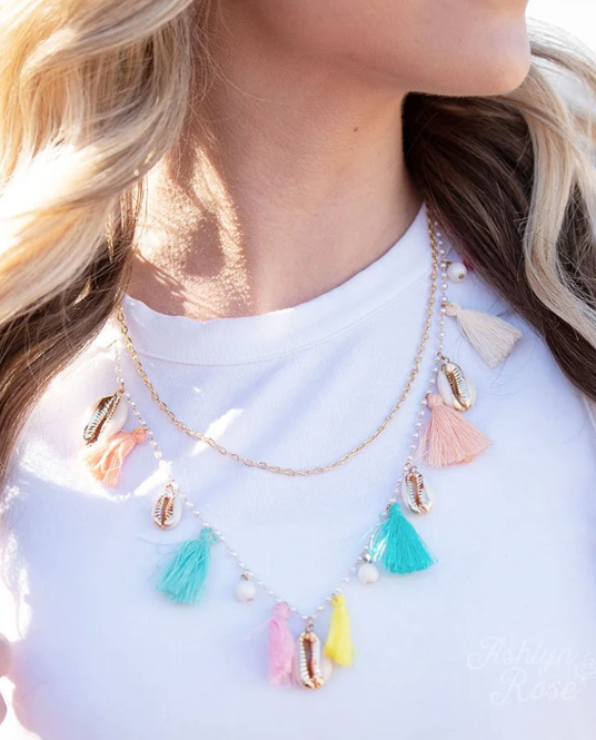 Happy as a Clam Chain Necklace with Shells & Multicolor Tassels