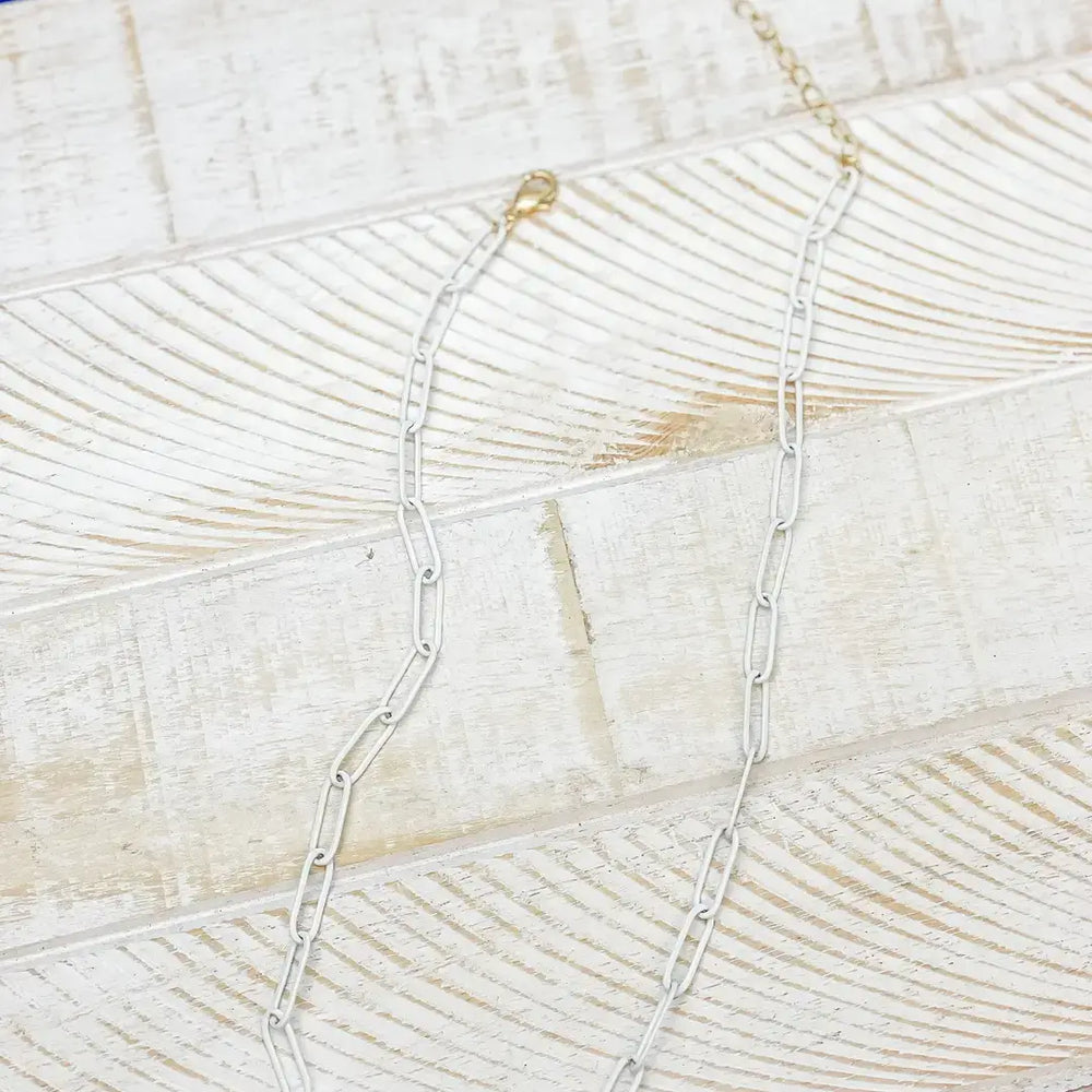 White Enamel Paperclip Chain Necklace