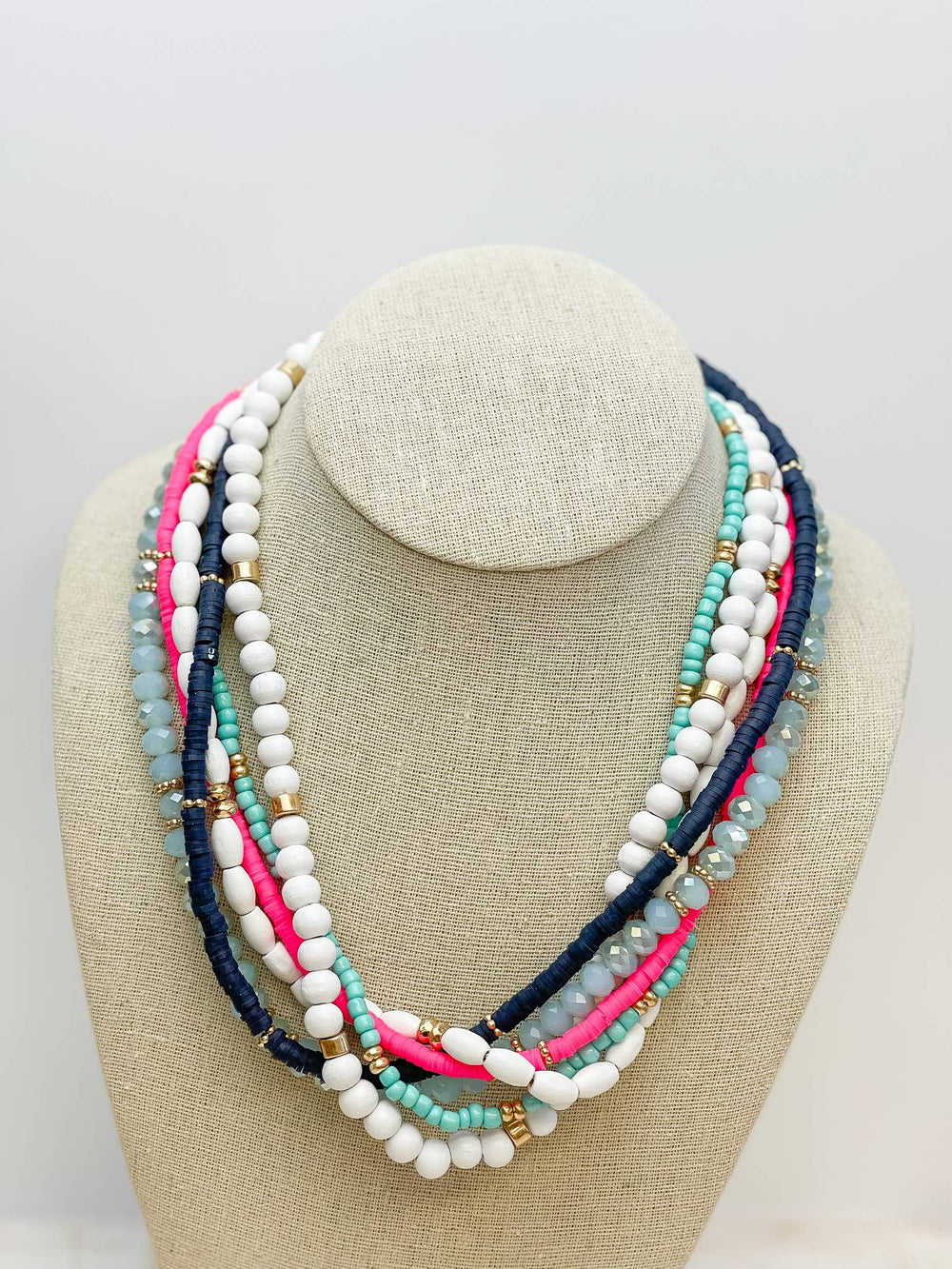 White Mixed Multi Beaded Necklaces