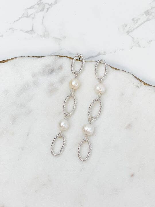 Experience the elegance of our Pearl Link Dangle Earrings. Crafted by Prep Obsessed Wholesale, these earrings are designed with care and precision, ensuring they are both lead and nickel compliant. Measuring at a length of 3", they provide a delicate dangle that adds a touch of sophistication to any outfit.