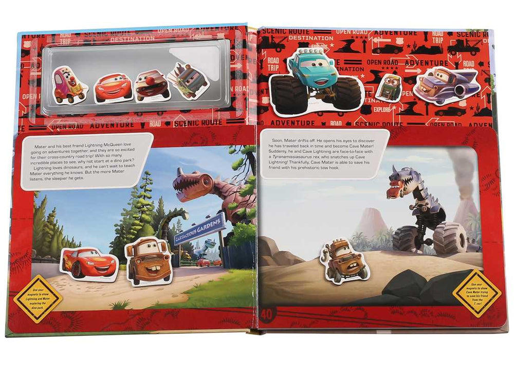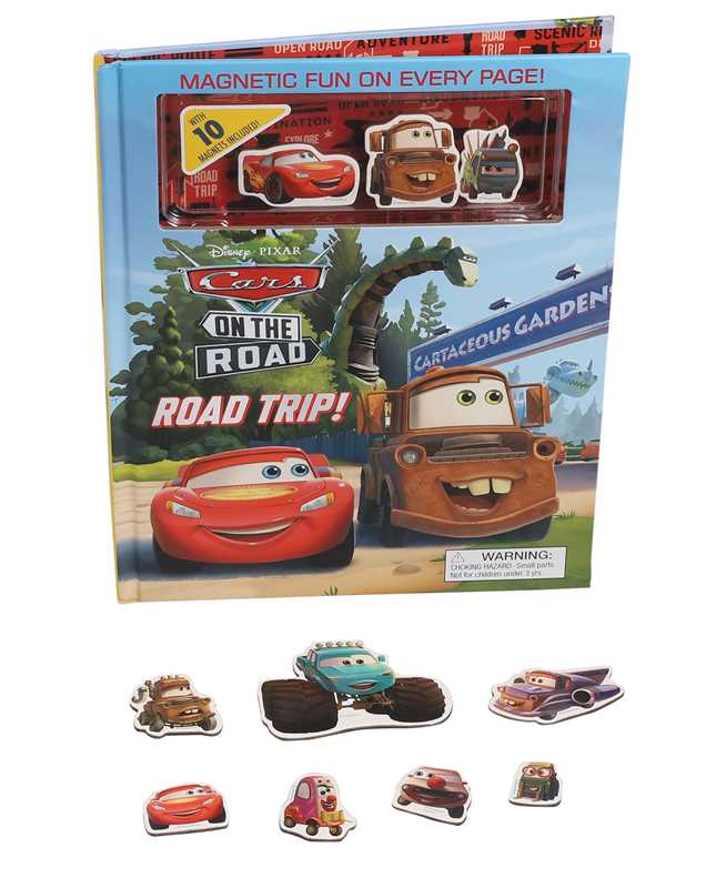 Pack your bags and go on the road trip of a lifetime with Lightning McQueen and Mater! Follow along as they find trouble and adventure in a dinosaur theme park, search for Big Foot in the woods, visit the circus, and race on the Salt Flats in this fun, interactive board book. With 10 magnetic pages and 8 included magnets to help bring the story to life, this book is full of engine-revving fun!