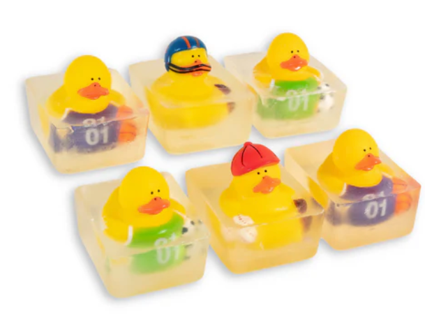 Make bath time fun! Adored by kids of all ages, this irresistible soap features a Sports rubber duck toy swimming happily in our naturally moisturizing glycerin soap. A low PH means it’s mild, kid-safe, and ready to liven up your clean routine.
