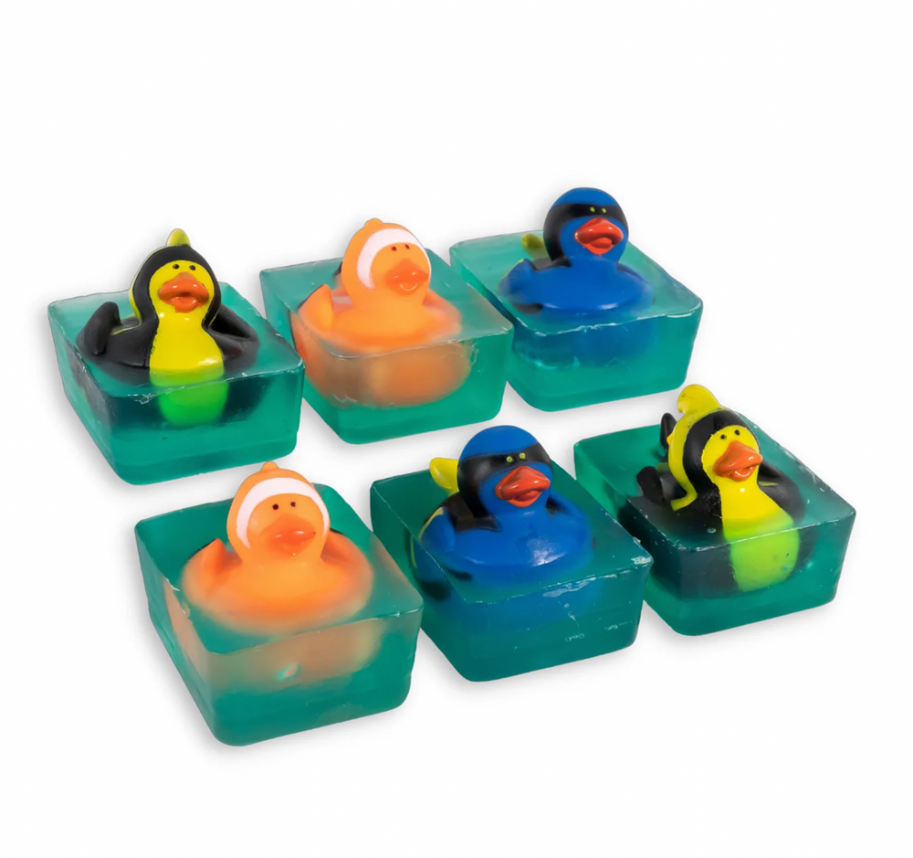 Make bath time fun! Adored by kids of all ages, this irresistible soap features a Tropical Fish rubber duck toy swimming happily in our naturally moisturizing glycerin soap. A low PH means it’s mild, kid-safe, and ready to liven up your clean routine.