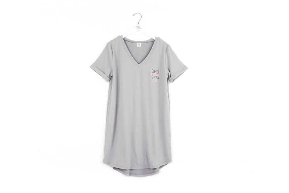 A sleep shirt so soft, you’ll want to go to bed early and sleep in late. Our graphic sleep tees have a long, relaxed fit with a casual rolled sleeve and comfy open neckline. Sleep, nap and lounge around in total comfort – pants optional! Makes a cute gift with drawstring pouch packaging.