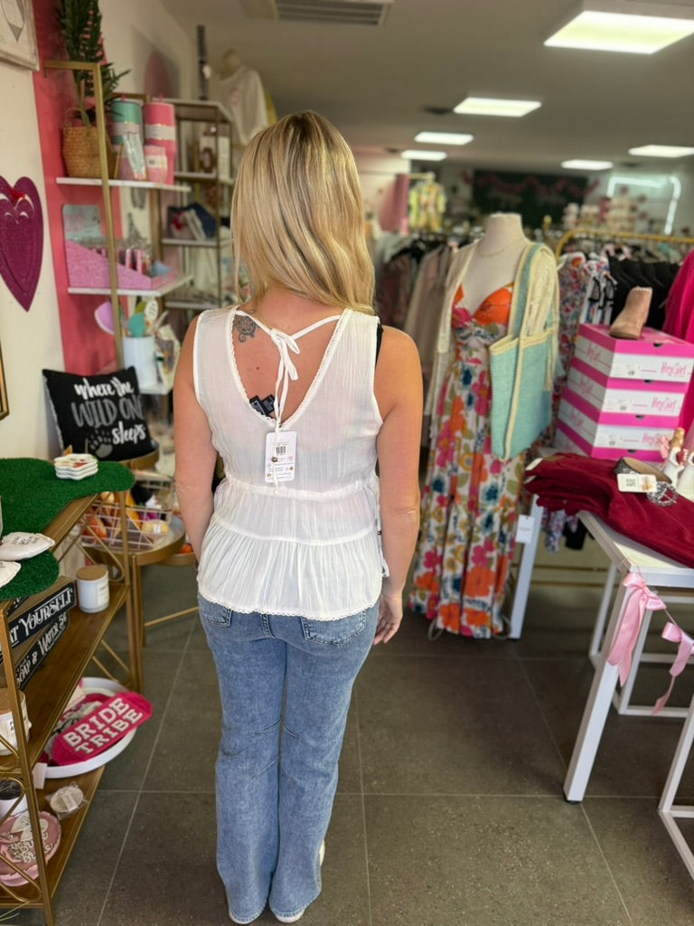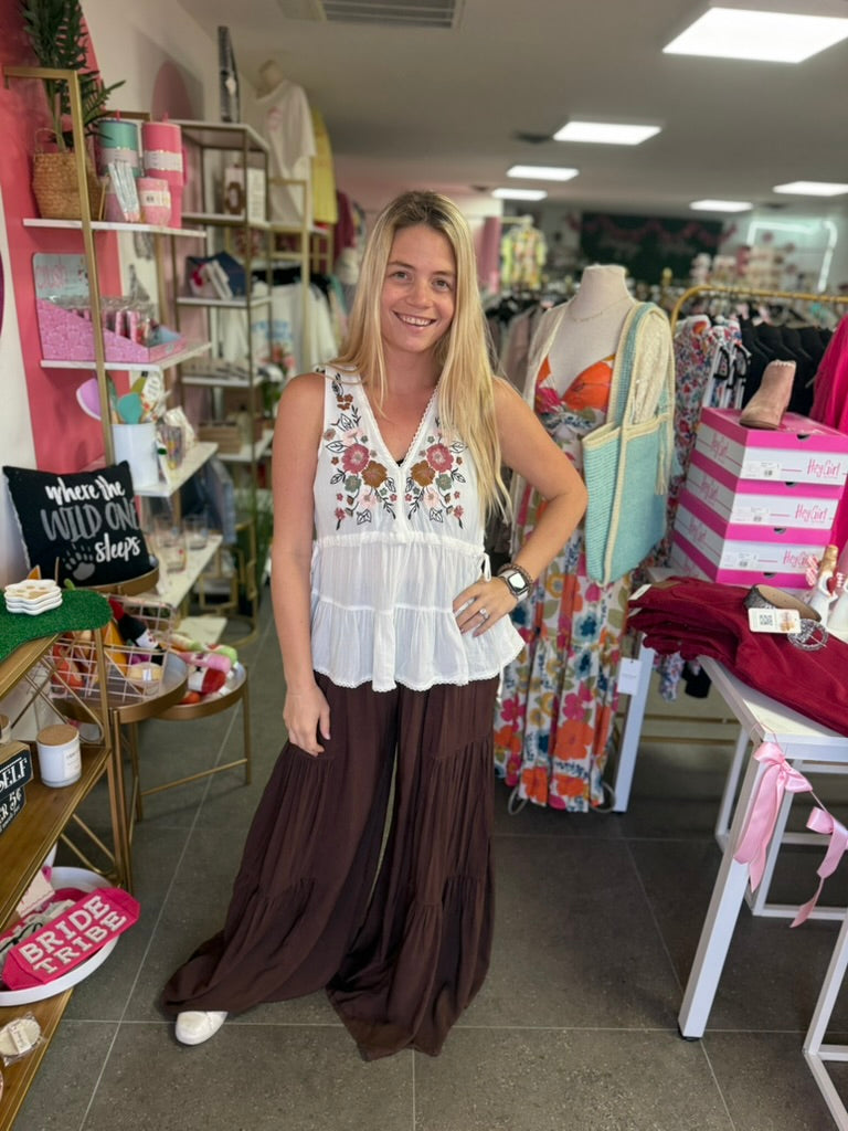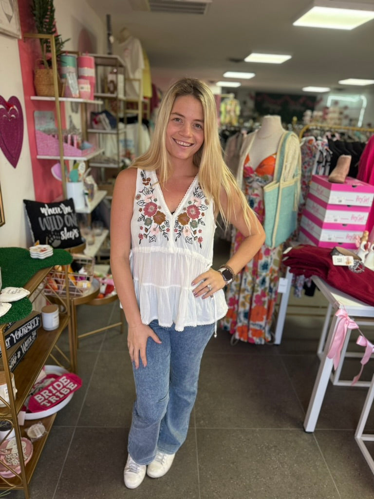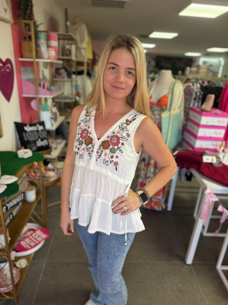 White Embroidered Tank Top