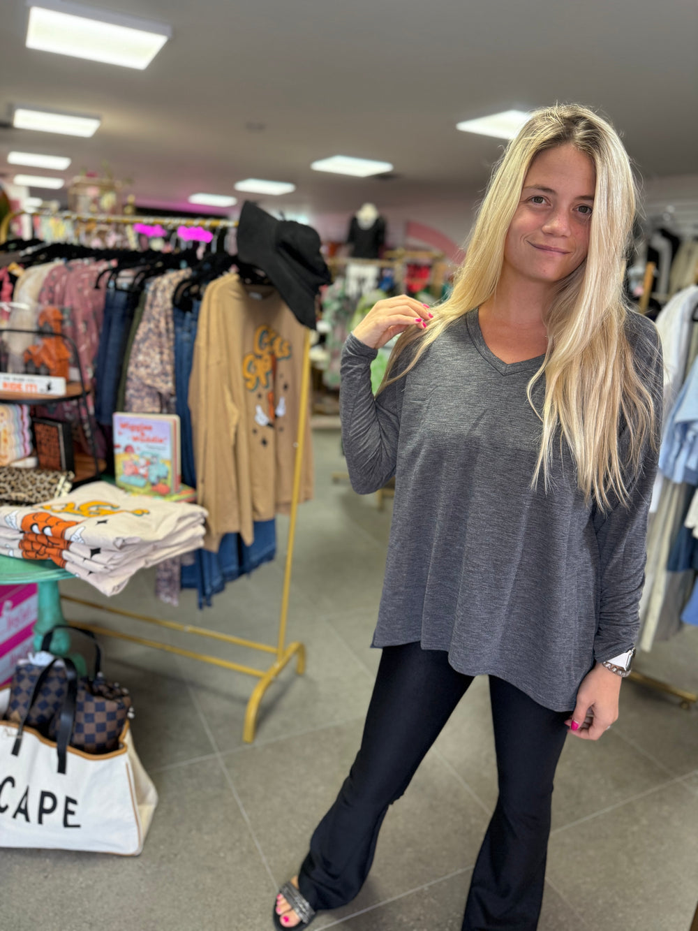 Charcoal Solid French Terry Top