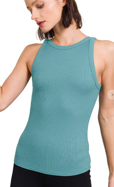 Dusty Teal Soft Ribbed Fitted Crew Tank