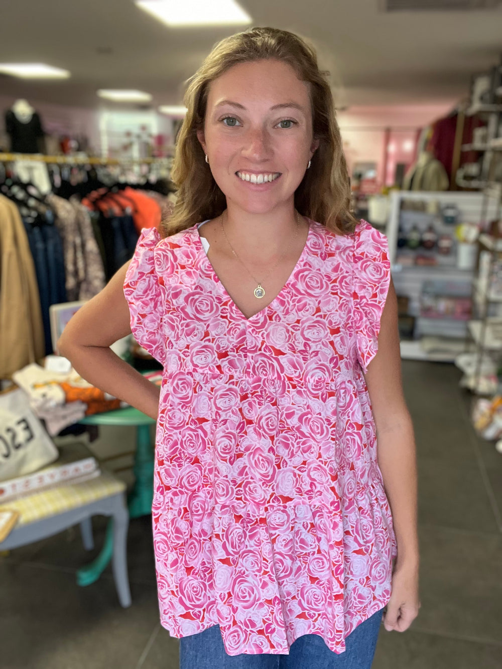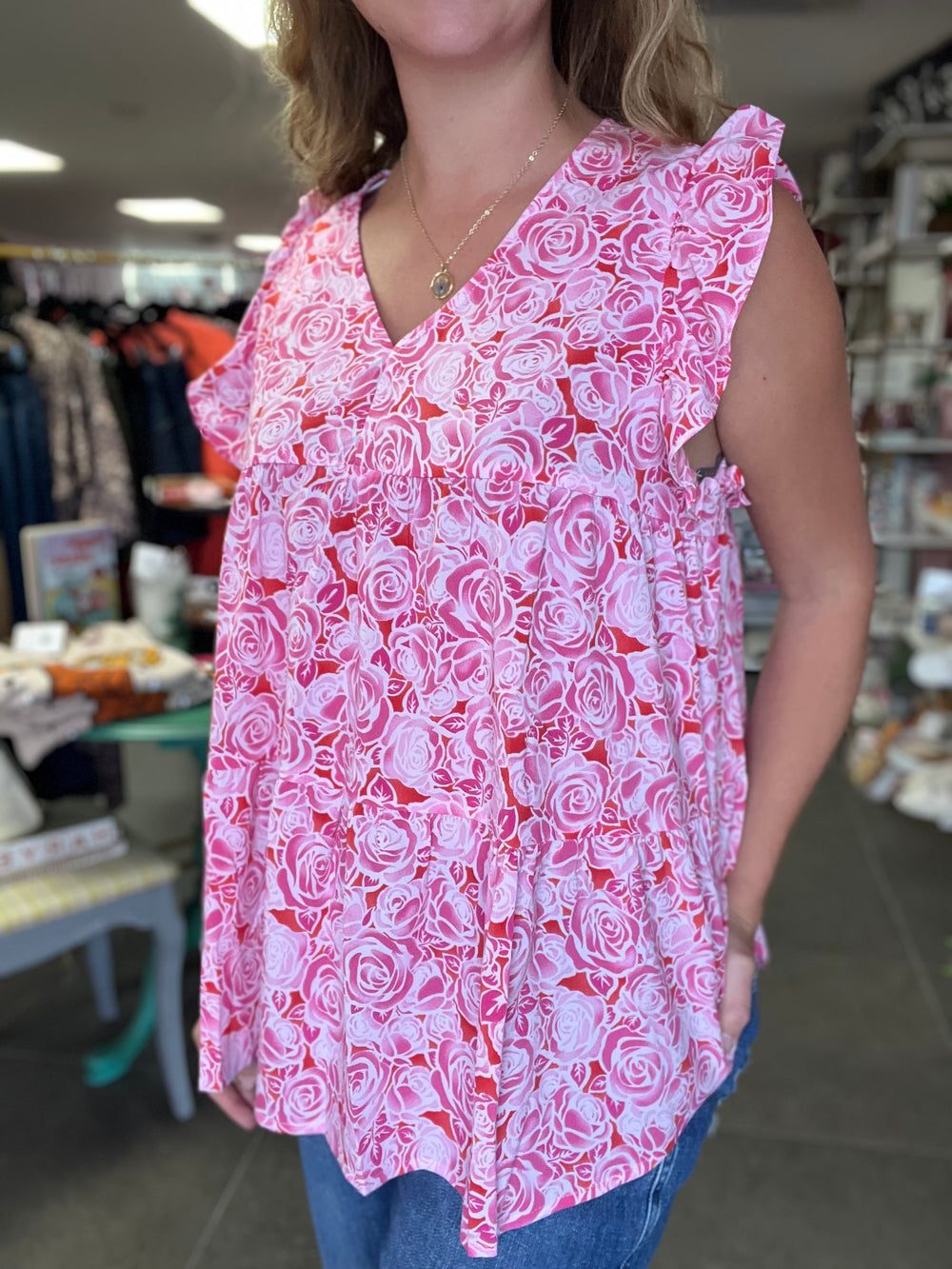 Rosy Posie Tank w/ ruffles