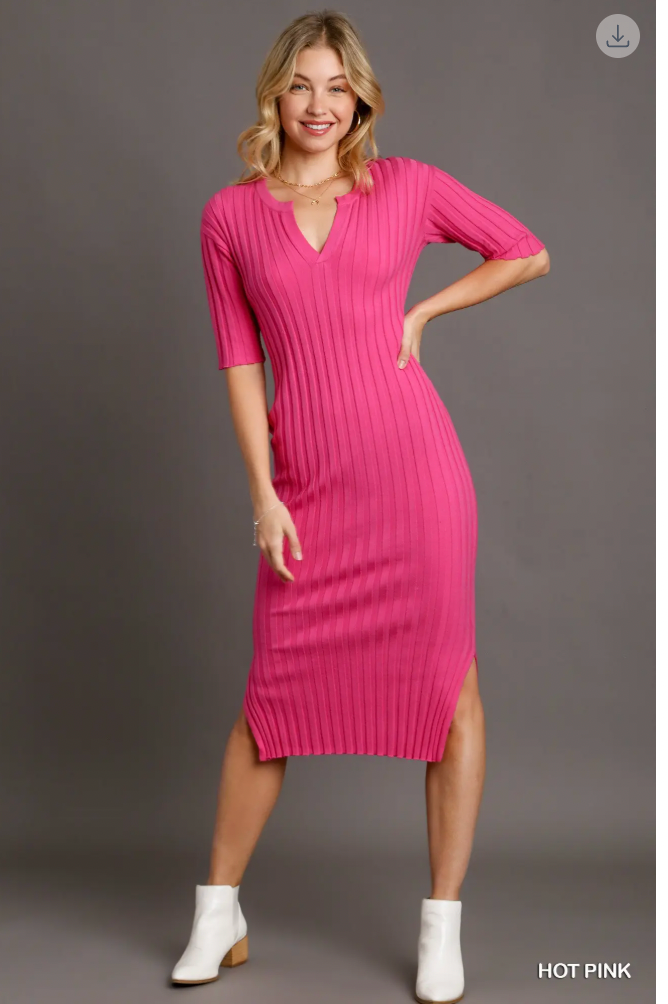 Hot Pink Fitted Midi Dress