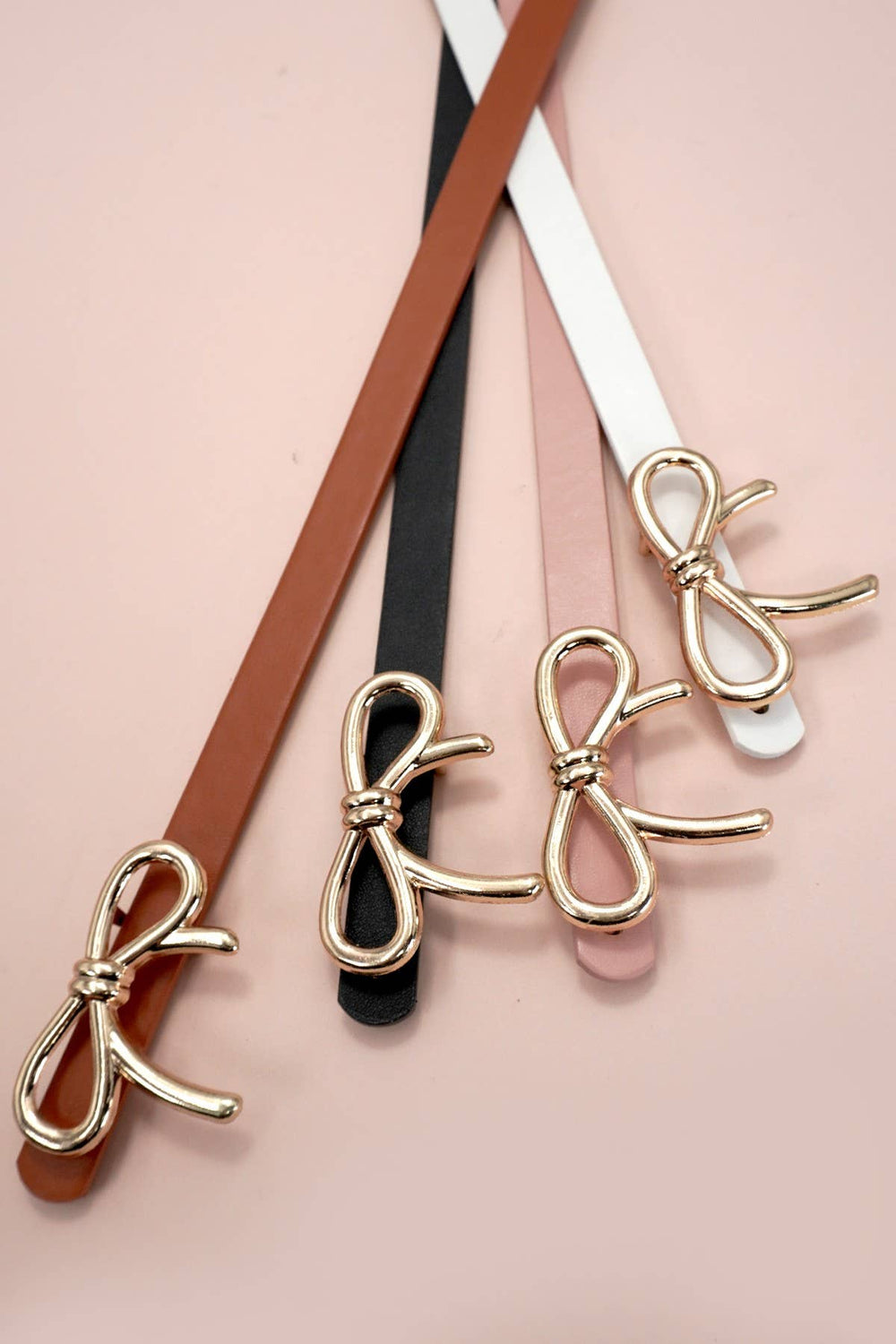 Smooth Bow-Shaped Buckle Faux Leather Belt, a perfect blend of timeless elegance and modern practicality. Featuring a sleek bow-shaped buckle made from premium polyurethane (PU), this belt offers a polished, smooth finish that exudes sophistication.