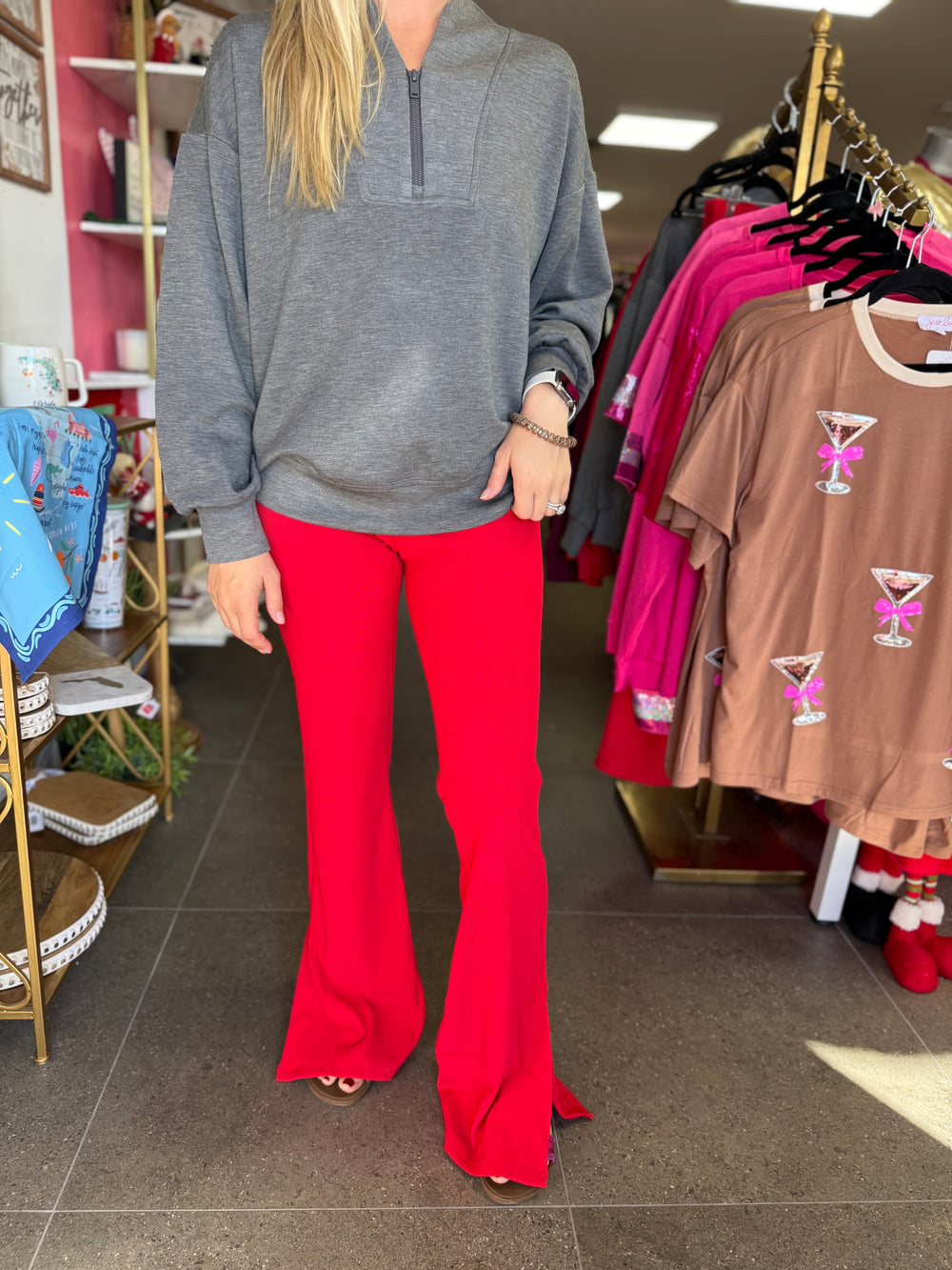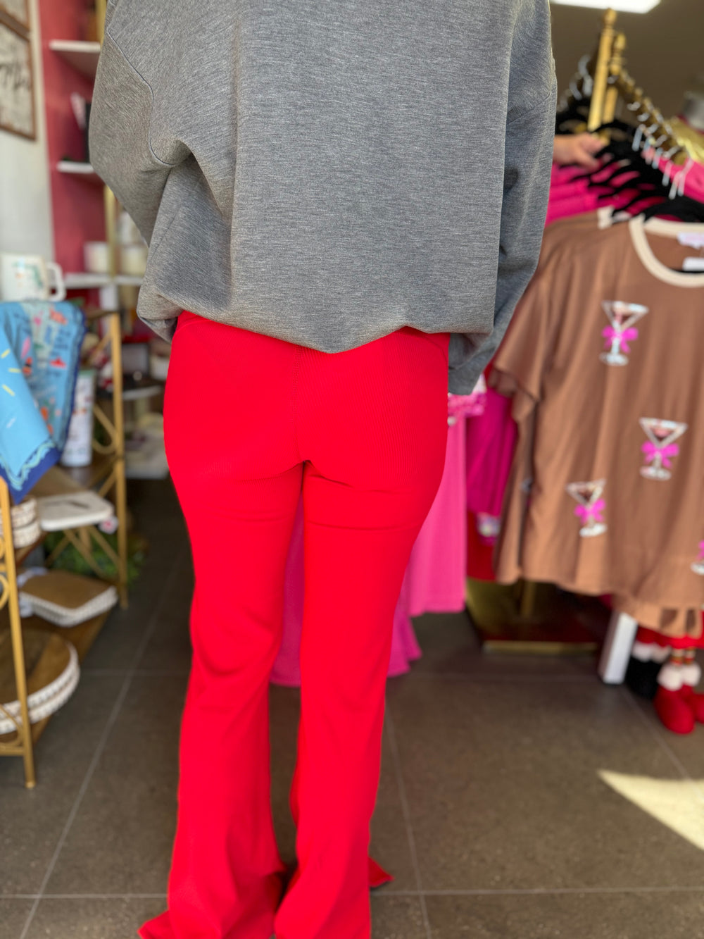 Turn heads this season in our Merry Red Ribbed Flare Leggings. Crafted from soft, sculpting ribbed fabric with a flattering flare fit, they hug in all the right places while giving you that festive pop of red. Perfect for holiday events, cozy nights out, or elevating your everyday winter style.