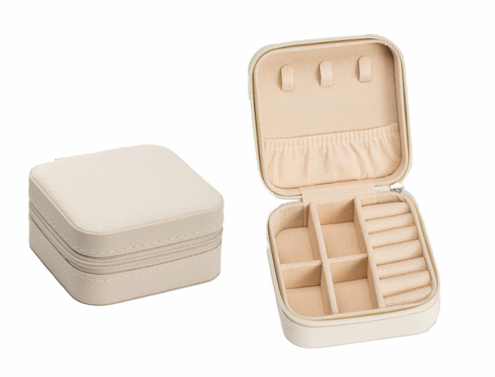 Description: My Jewelry Caddy Square Jewelry Box, PU Leather, 4" L, 4" H, 2" W