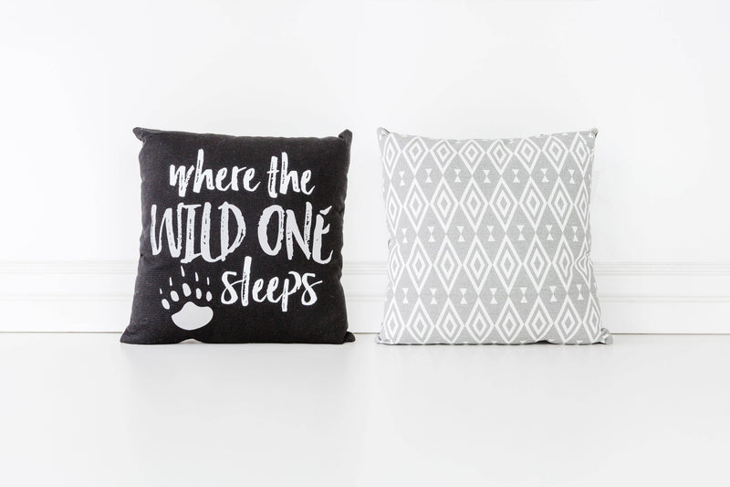 This fancy pillow (Product Number 93) features a pretty black and white color combination and will look great together with your other black and white decors. Displaying a humorous message saying, "Where The Wild Ones Sleeps", this decorative pillow can provide a unique touch to your home or office. It has 1% cotton canvas exterior and 1% polyester fill that make it more huggable, making you feel more comfortable. Designing home and holiday decors for over 8 years, Adams & Co has shown the world its unique style and conventional flair that can bring you any theme that you want to achieve. From seasonal decorations to traditional ornaments, we have everything you need to add life to your home or office.