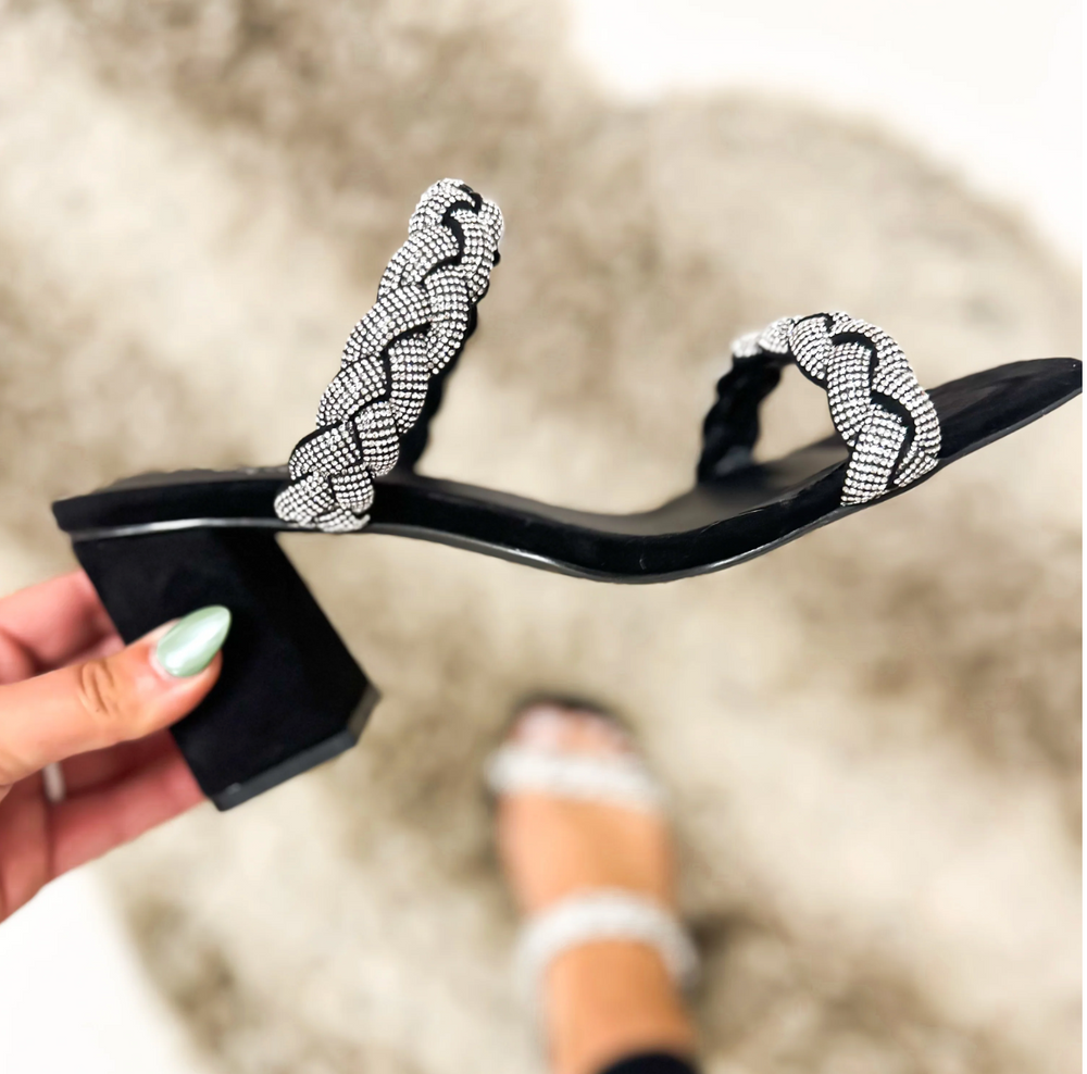 These heels are perfect for a night out or date night. The thick heel is going to provide all night comfort and makes them very easy to walk in. The beautiful black with the clear braided straps give this a fun, dressy detail. These have a 3.5" heel.