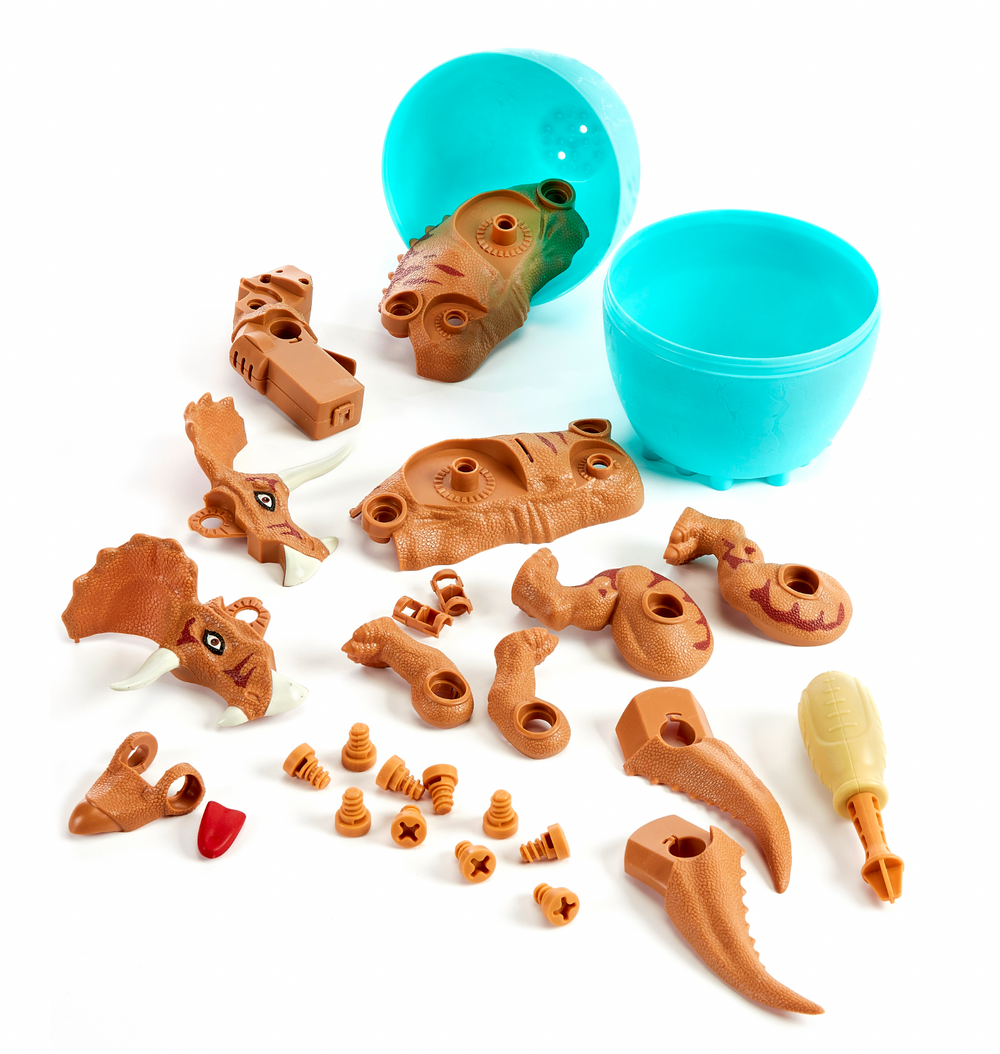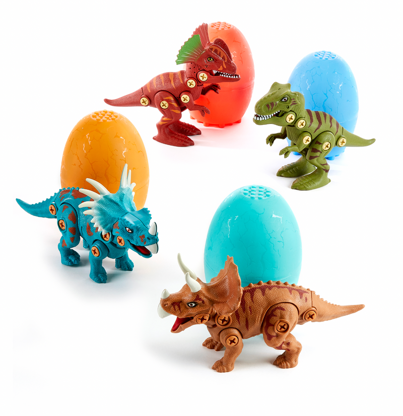 DIY build your own dinosaur kit. Open up the egg, prepare the instructions and assemble the pieces! Collect them all to create your own Jurassic park.