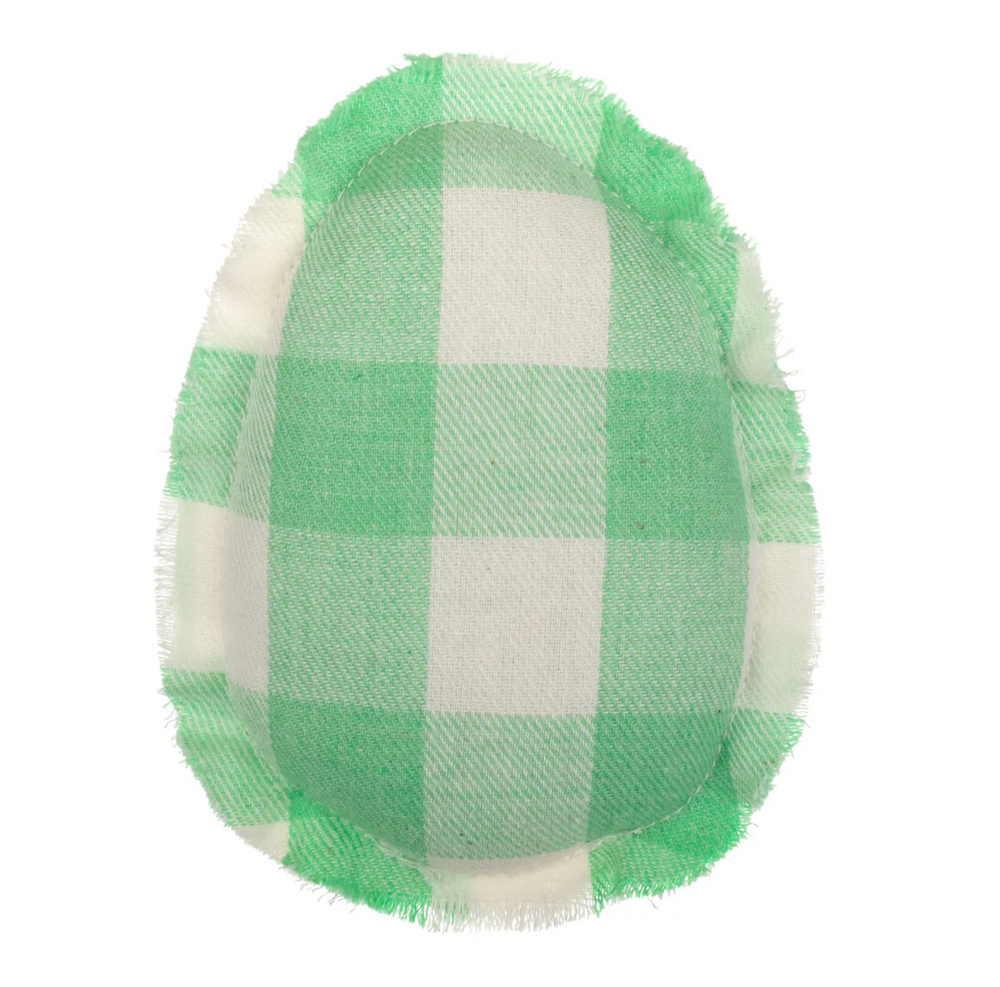 Green and White Buffalo Check Pattern Fabric Stuffed Egg.
