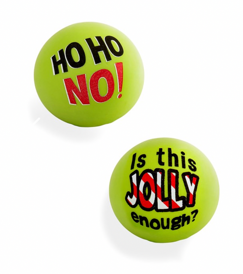 Squeeze away the stress of the holidays with this stress ball styled in Grinch green with a Grinchy sentiment.