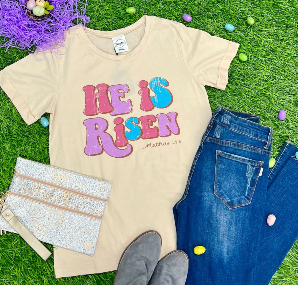 He is Risen on Classic Tiramisu-Beige Cuff Tee