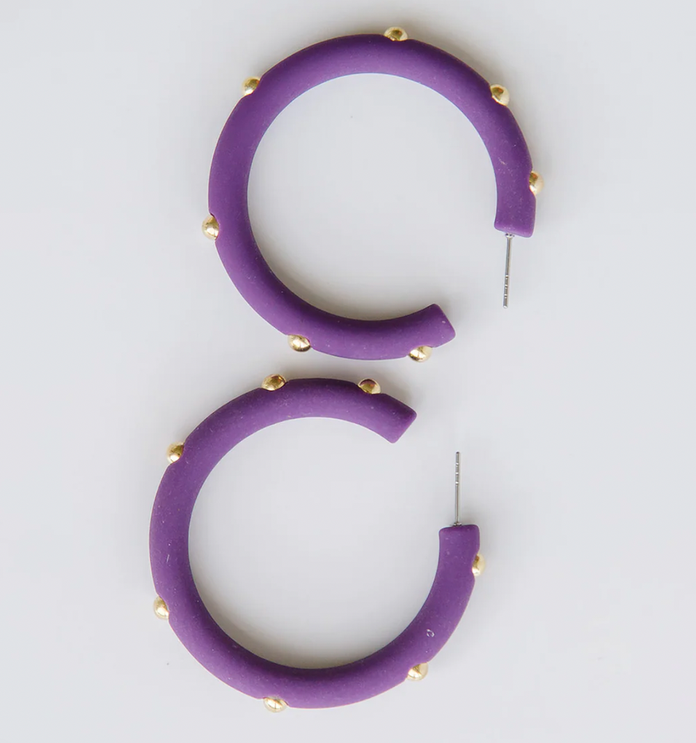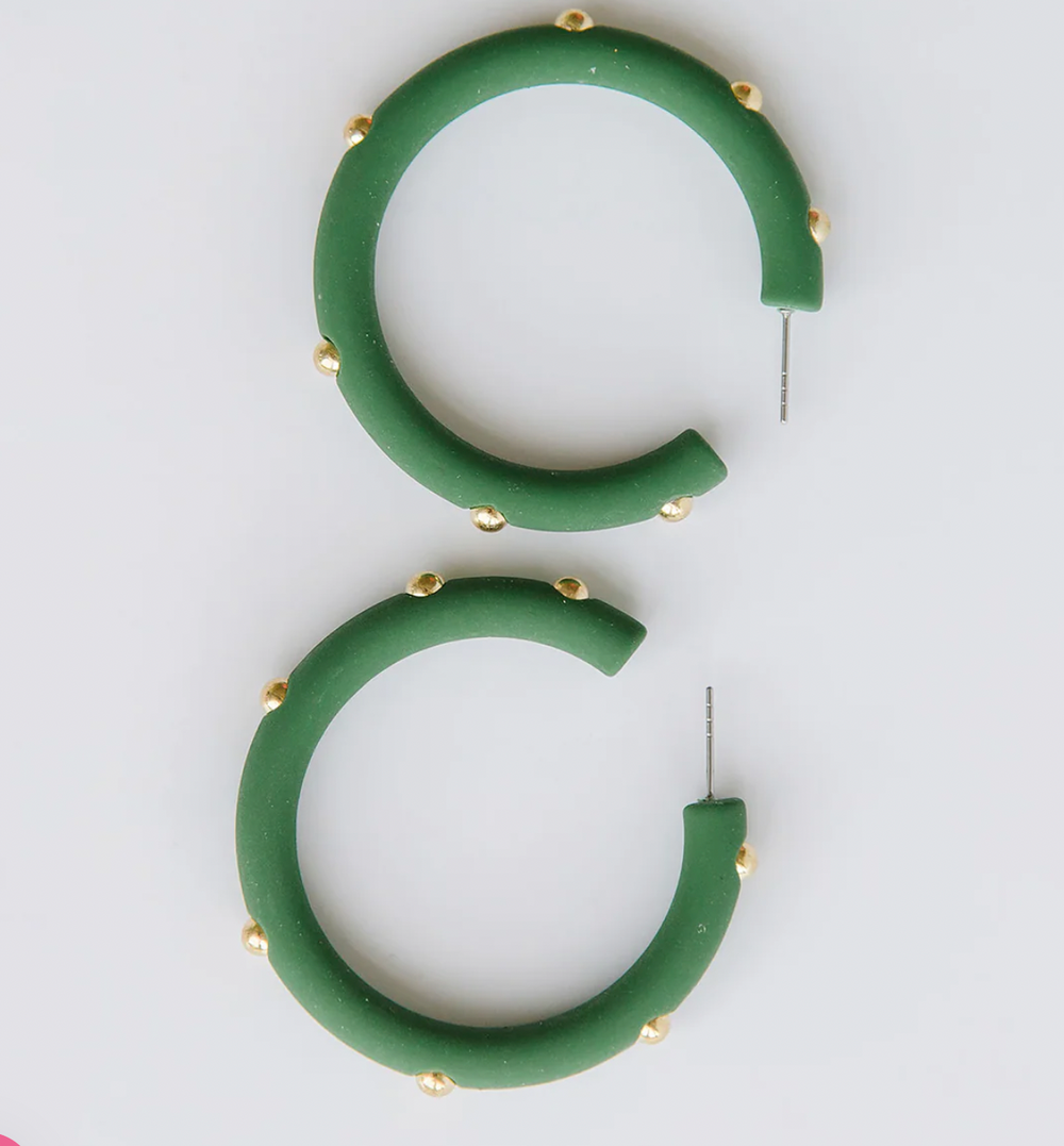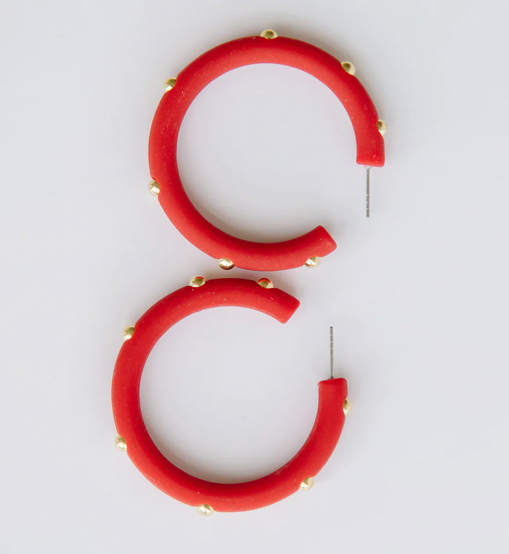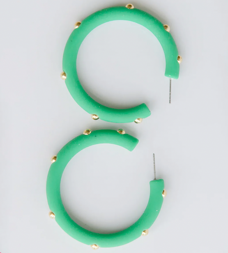 • Resin hoop earrings with gold bead accents