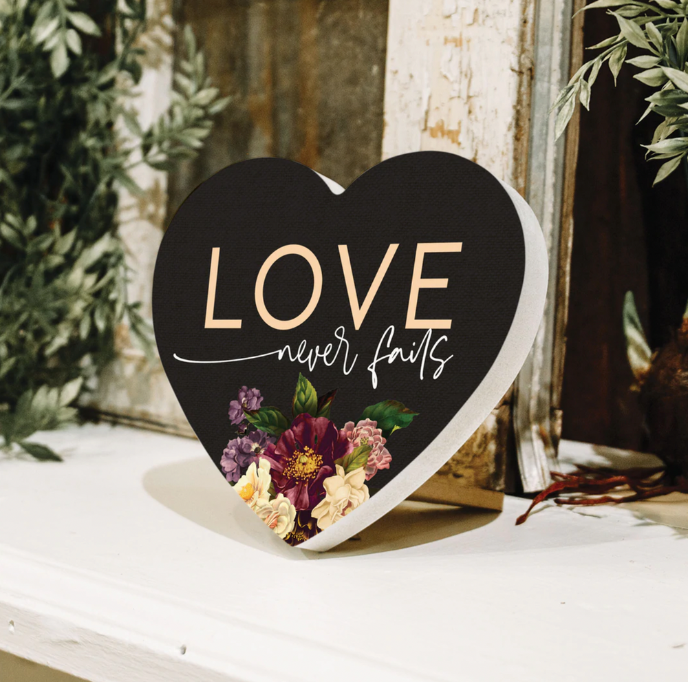 Carved into the shape of a heart, this piece includes fun, definitive features. Easily display in small spaces - on a desk, bookshelf, or dresser. Features a small, wooden easel for angled display.