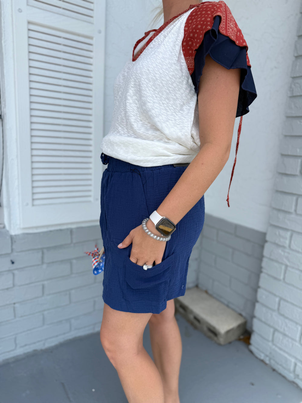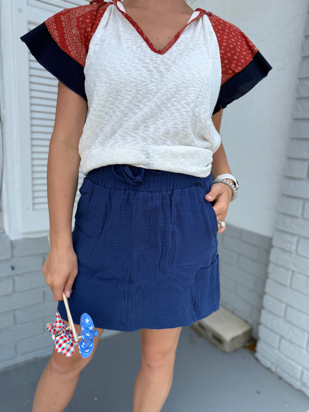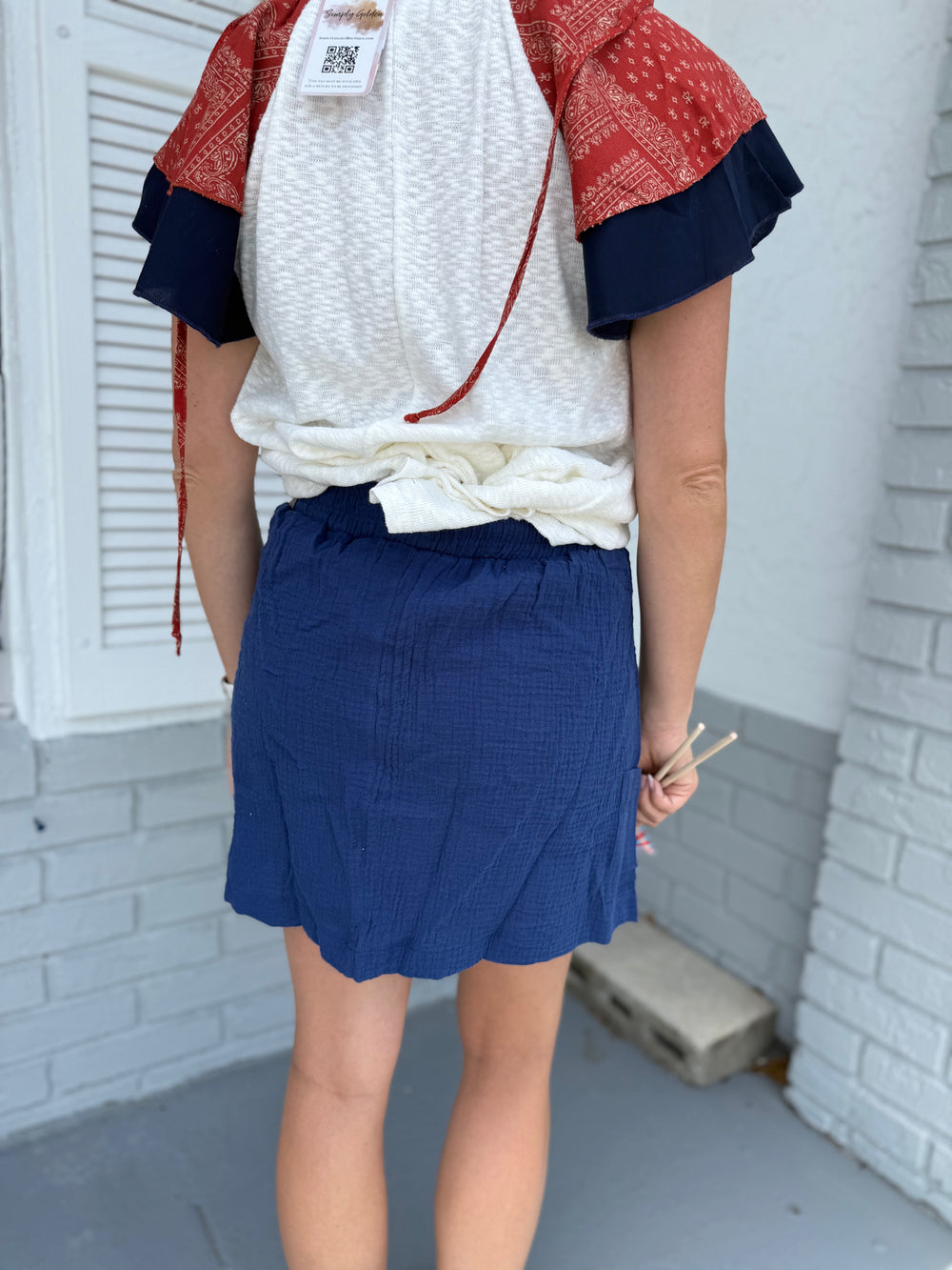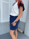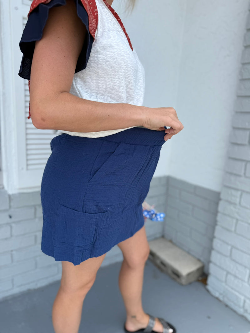 Navy Drawstring Gauze Pocketed Skort