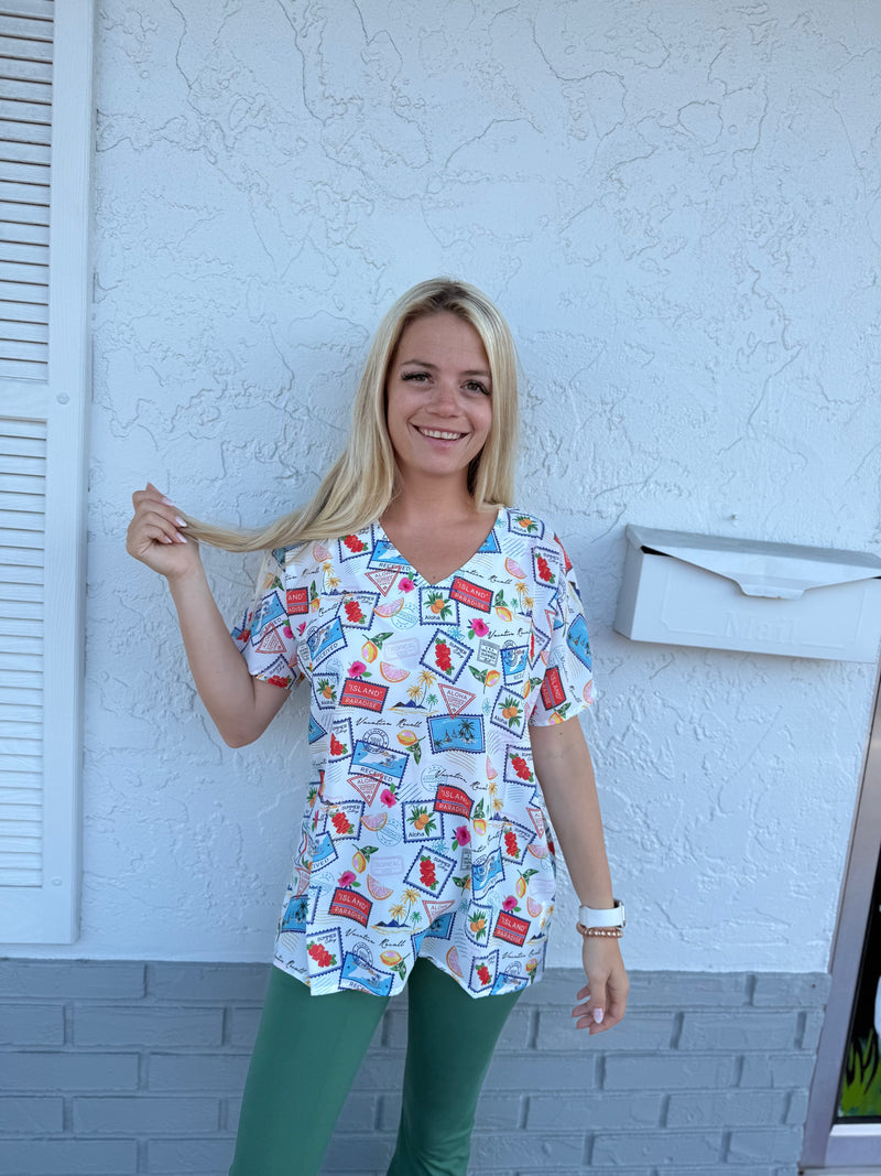 Get ready for your next vacation with our Passport Needed Tunic Top. With its vacation-themed design, this top is the perfect addition to your passport. Don't miss out on this must-have piece for your travels!