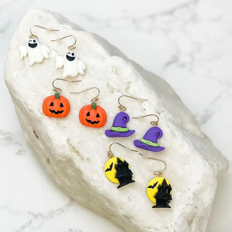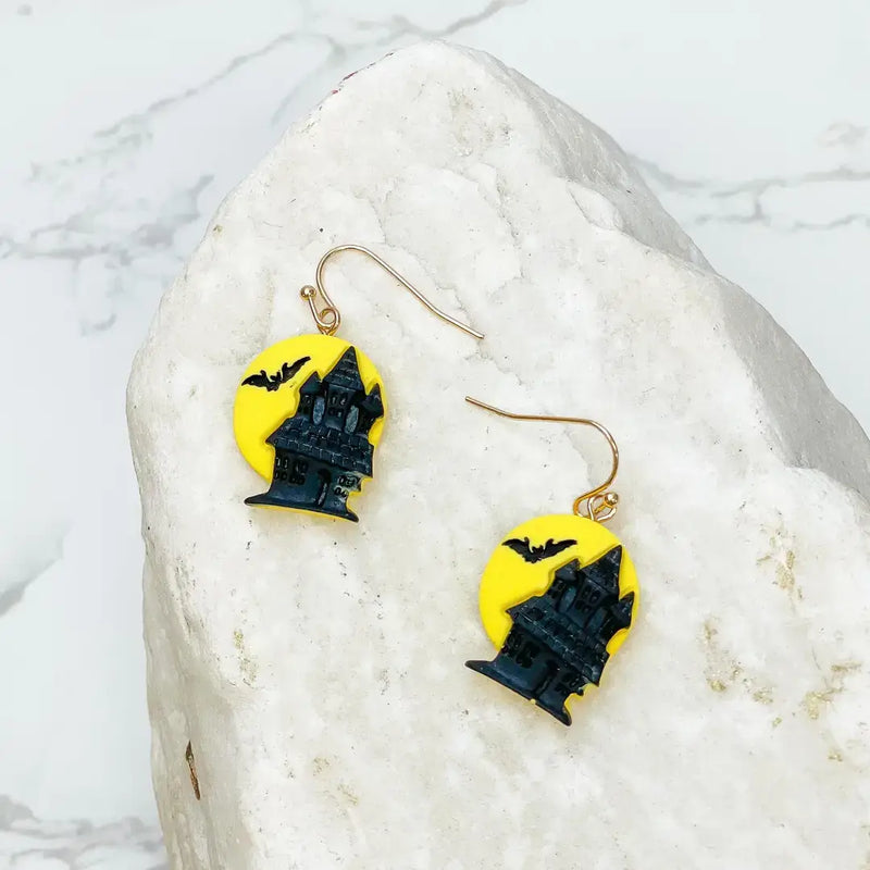 Dive into the spooky season with Prep Obsessed Wholesale's Clay Haunted House Dangle Earrings. With a length of 1.20", these earrings make a striking statement without overpowering your look. They're designed with the utmost care to ensure they're both lead and nickel compliant. Ideal for those who love unique and fun accessories, these earrings will surely make you stand out this Halloween season.