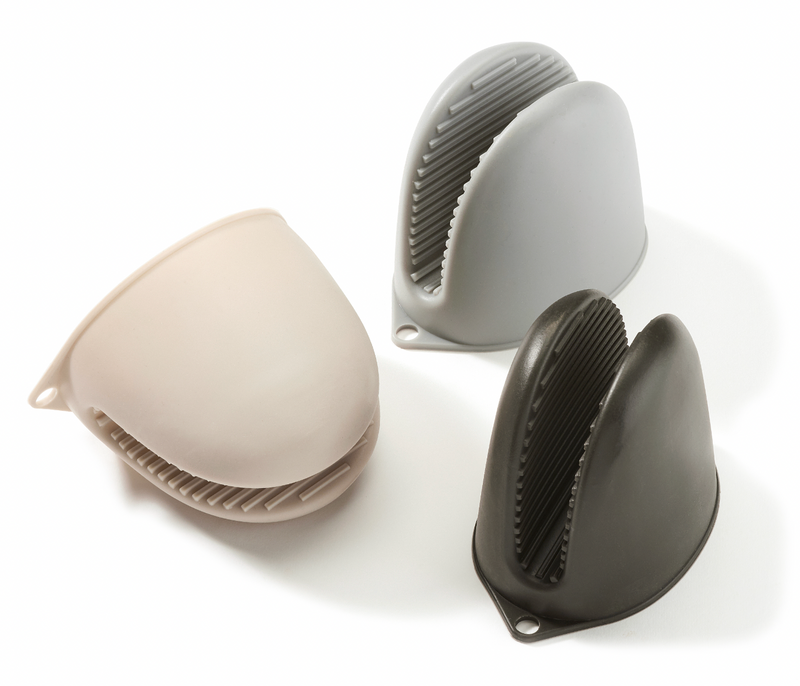 Suited for either hand, this mini oven mitt features a ribbed texture for an anti-slip grip and is a less bulky option to traditional oven mitts.
