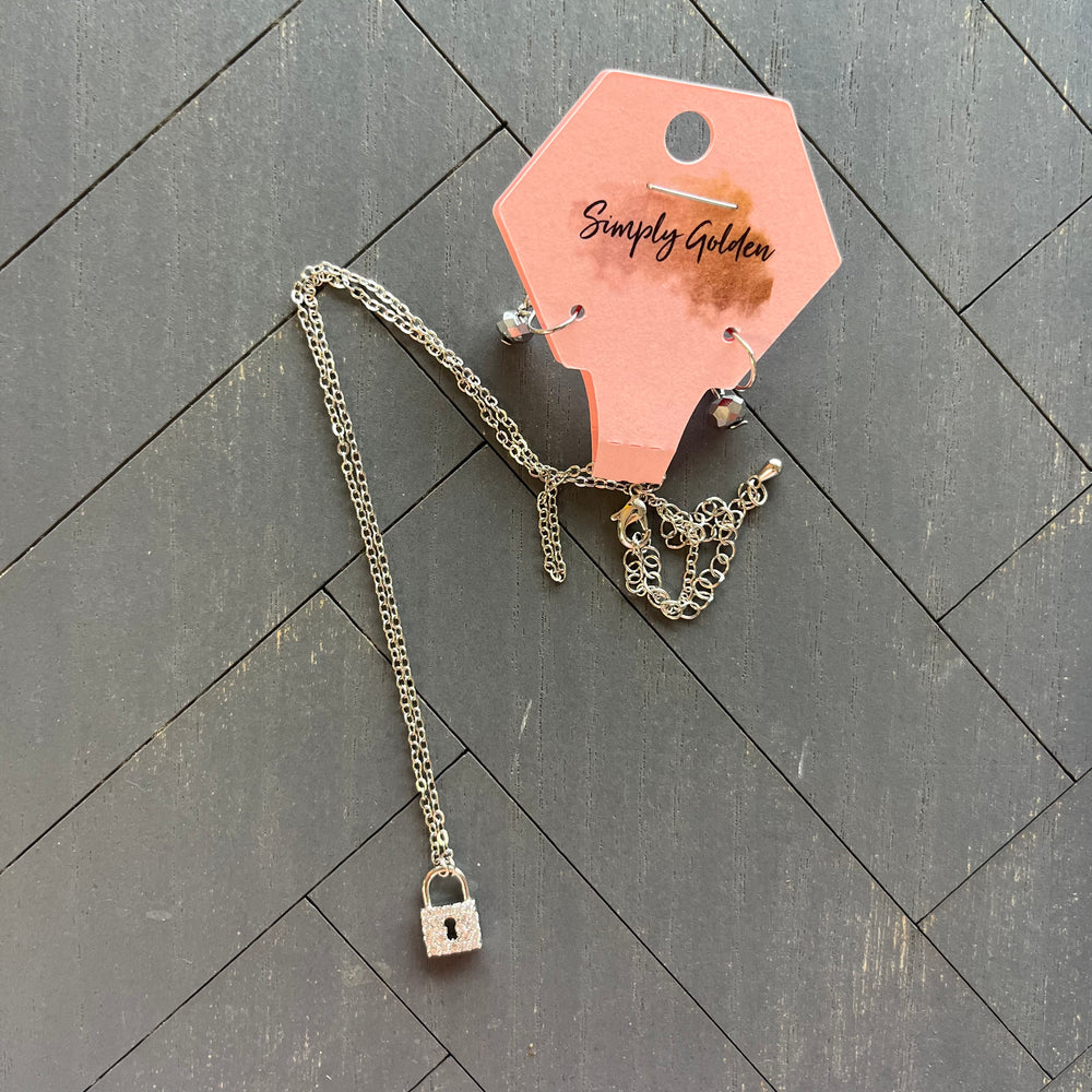 Silver lock necklace with earrings
