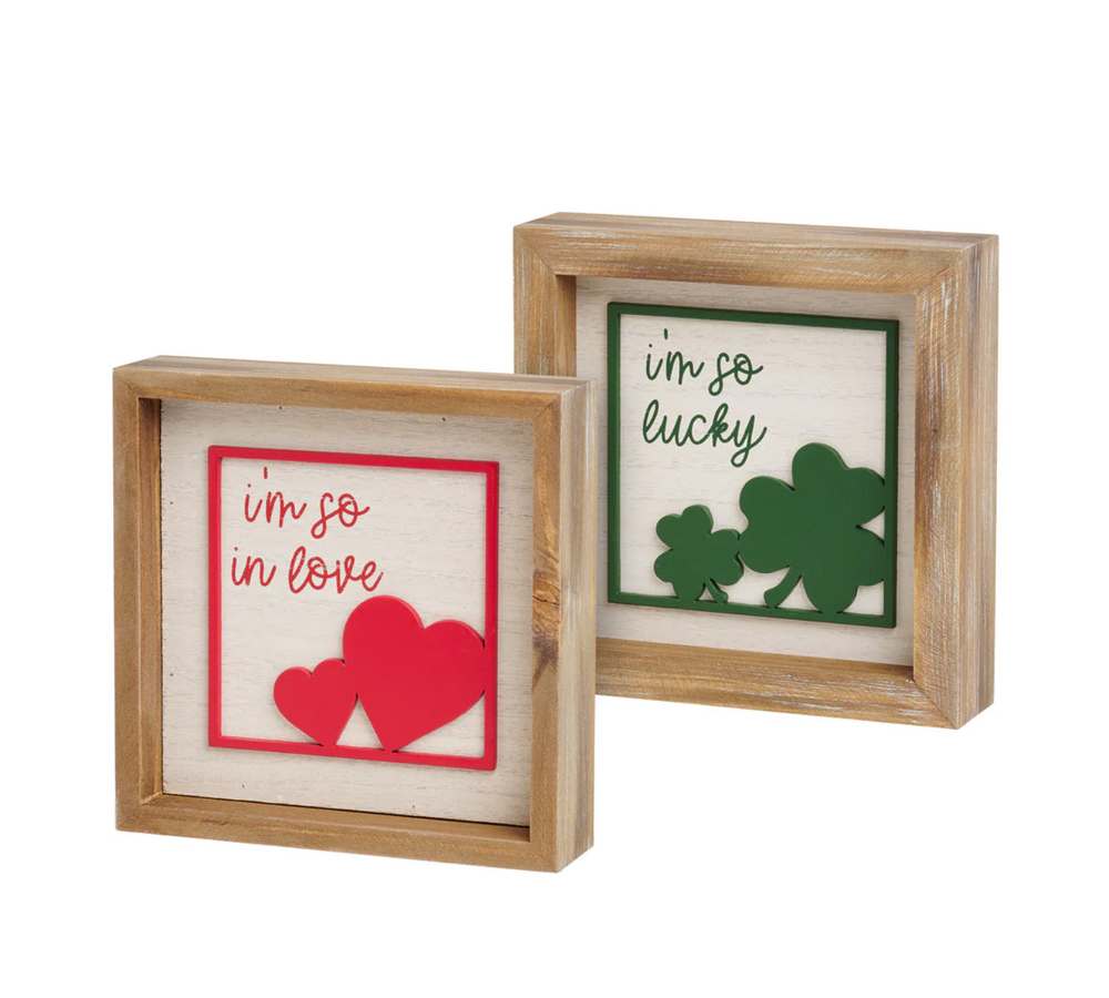 Vintage Wood Washed Framed Sign with Green and Red Washed Wood Background, White Laser cut Text