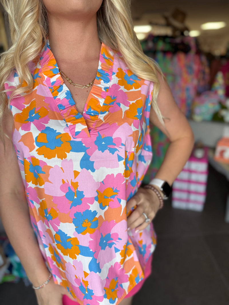 Introducing our Lennon Top, where modern elegance meets springtime freshness. With its sleeveless silhouette, delicate ruffle neckline, and a flattering straight fit, this top offers a sophisticated look that effortlessly transitions from day to evening, making it a must-have staple for your spring wardrobe.
